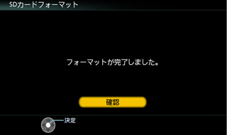 | 6.フォーマットが完了すると「フォーマットが完了しました」が表示されます。 |