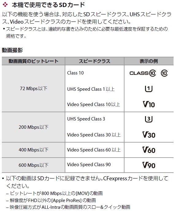 - SDカードには記録できない [記録ファイル方式(動画)] や [動画画質] があります。CFexpressカードを使用してください。