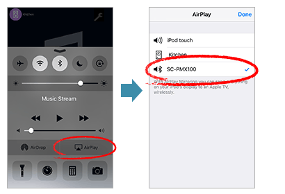 The device you want to connect to needs to be paired with iPad / iPhone / iPod touch previously. Please do paring setting of the Bluetooth® After setting Bluetooth paring, select "This device" on the "Speaker" screen.
