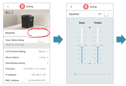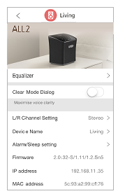 - By tapping [Check For Firmware Update] on the "Speaker settings" screen, you can check the latest firmware of your AllPlay speakers on the "Speaker" screen.