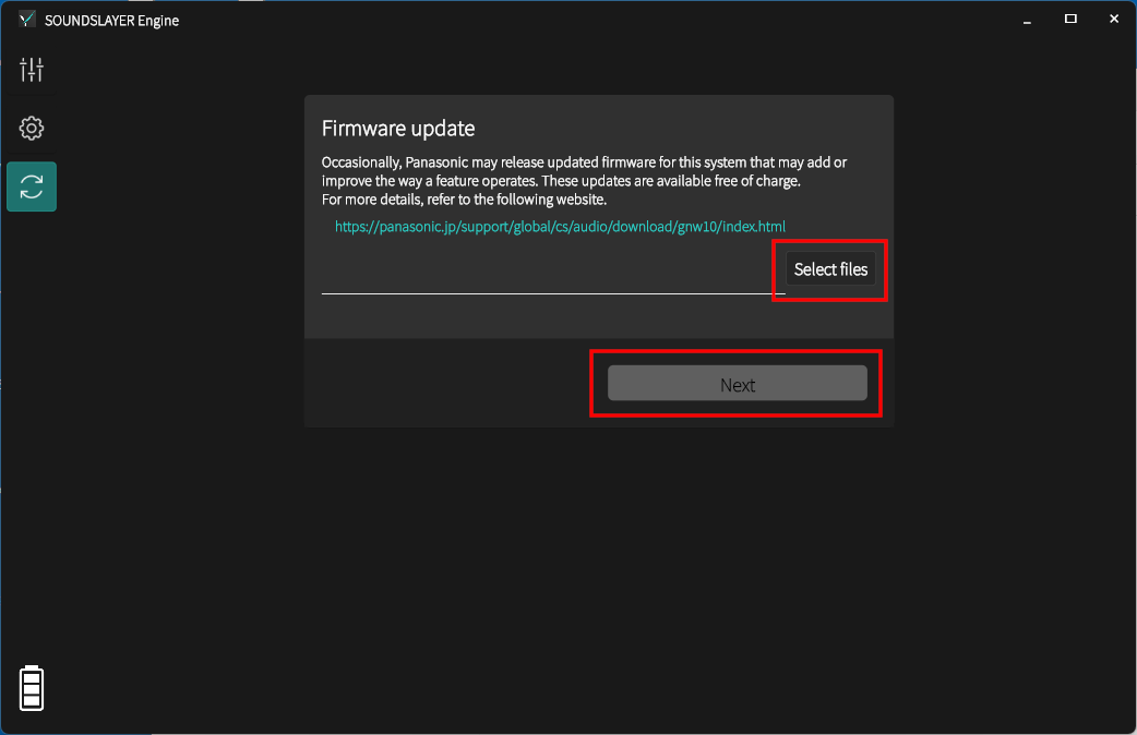 ⇒SOUNDSLAYER Engineをインストールする1. Prepare the downloaded firmware file for this unit (SC-GNW30): SCGNW30_S001_20251208.bin.