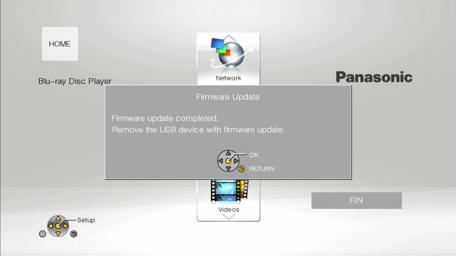 - If the firmware update USB device has write errors, it will not be readable by the Panasonic Blu-ray Disc™ Player and you will not be able to update the firmware.