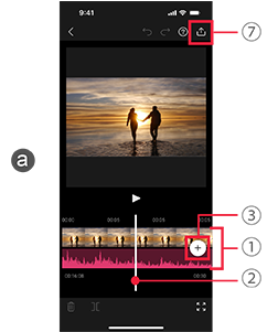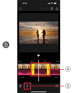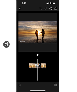 Touch and hold the timeline (a-1) to switch to the screen for rearranging shots (d).