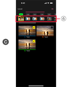(a-3) and select [Video saved in this app] to switch to the clip selection screen c. - Select a folder 6 to list the clips in it.