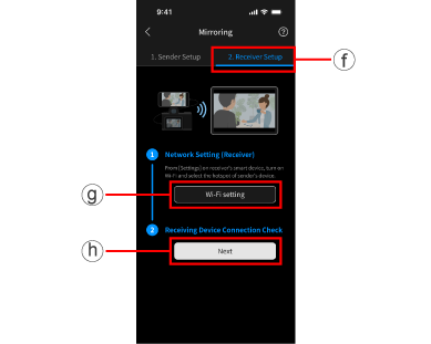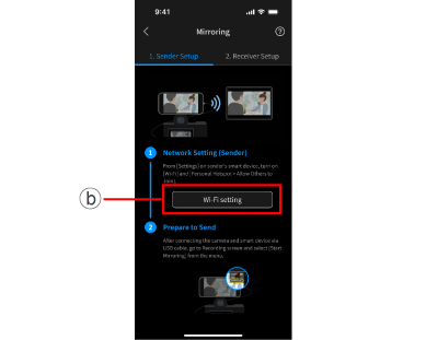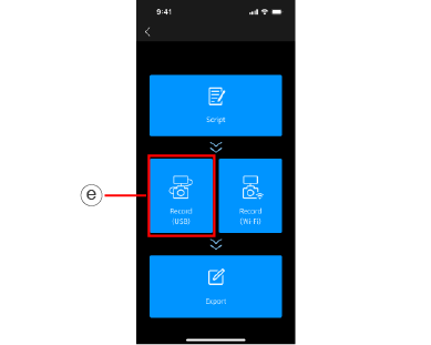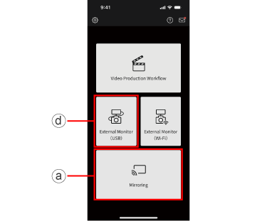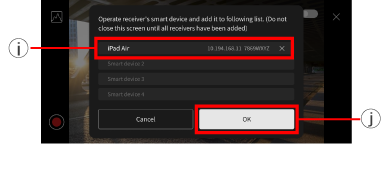 When using the function for a video production workflow, select it from e [Record (USB)] of the project. - 4 Continue operating the receiving smart device while keeping this screen displayed.