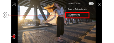 After connecting the camera and smart device via USB cable, go to Recording screen and select c[Start Mirroring] from the menu.