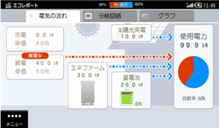 エコレポート画面で表示される売買電力の単価や料金などは目安です。正しくは、ご契約の電力会社などから通知される料金をご確認ください。 |