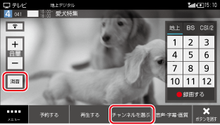 「チャンネルを選んでテレビを見る」の手順 3 の画面で、項目を選んで操作することができます。