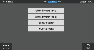 設定メニュー の「家電機器設定」から「料金設定」をタッチする