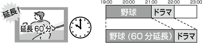予約後に放送時間が変わっても、録画時間を自動的に変更します。(3時間までの変更に対応)