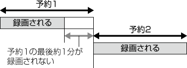 開始時刻の早い番組を優先して録画します。録画が終わり次第、次の番組が途中から録画されます。