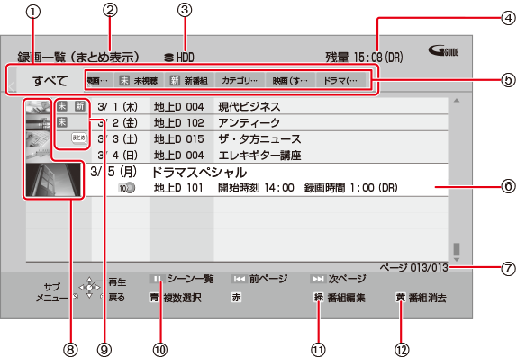 録画後すぐは「録画済」と表示(画像は電源「切」時に作成されます)
