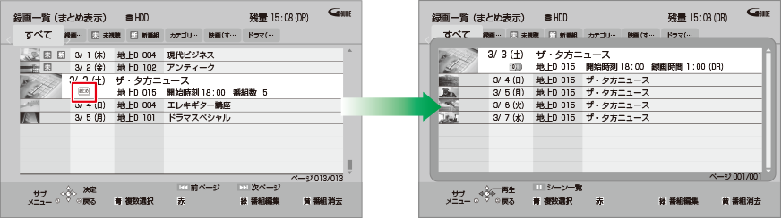 毎日・毎週予約やカテゴリーまとめて予約で録画した番組は、録画一覧では 番組として表示されます。