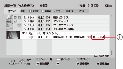 番組を編集する 」手順 3 で「録画モード変換」を選び、を押す