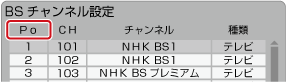 「Po」欄の「1」~「12」はリモコンの数字ボタンの番号です。(変更できません)