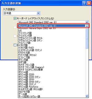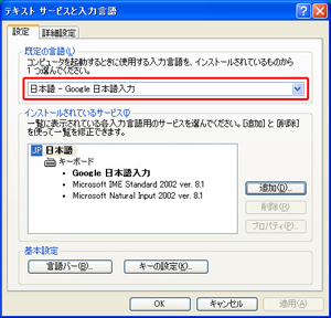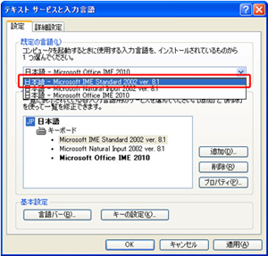 「インストールされているサービス」に「Microsoft IME Standard 2002」が既にある場合は、「既定の言語」に「日本語 - Microsoft IME Standard 2002」を選択してください。