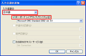 「キーボードレイアウト/入力システム」で、「Microsoft IME Standard 2002」を選択して、「OK」をクリックしてください。