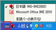 IME2010とIME2002を切り替える場合は、デスクトップ上にある(通常画面右下)入力言語バーの「キーボード」ボタンをクリックして選択できます。