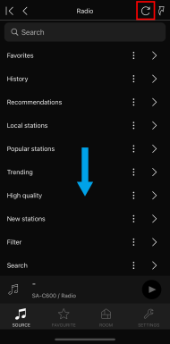 You can refresh to the latest information by tapping the button at the top of the browsing screen or by pulling the list downward.
