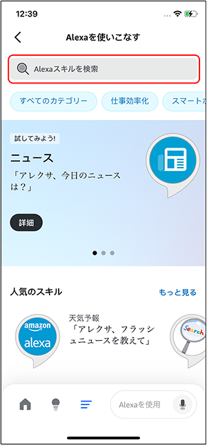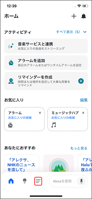 ① 「Amazon Alexa」アプリを起動します