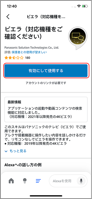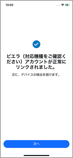 ⑮ [ビエラ(対応機種をご確認ください)アカウントが正常にリンクされました]画面になります。