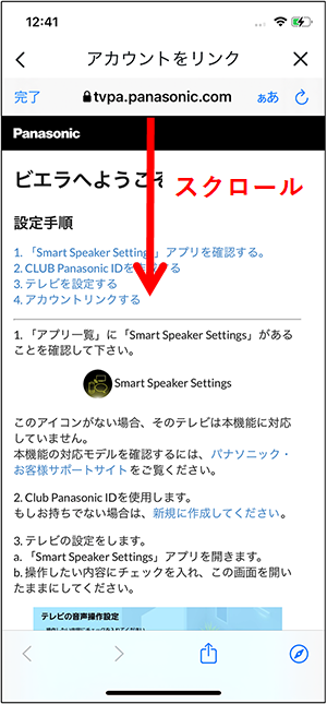 ⑨ 「ビエラへようこそ」画面になったら、スクロールしていく