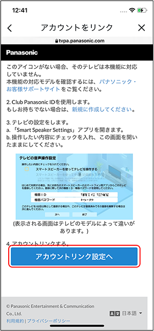 * CLUB PanasonicのID/パスワードが必要になります。予め準備をお願いします。