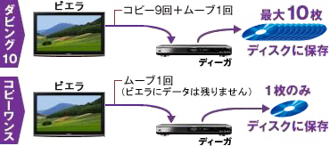 ビエラとディーガを同じホームネットワークに接続することで、ビエラに接続したUSBハードディスクに録画した番組を、ディーガのハードディスクにダビング(コピー、ムーブ)できます。