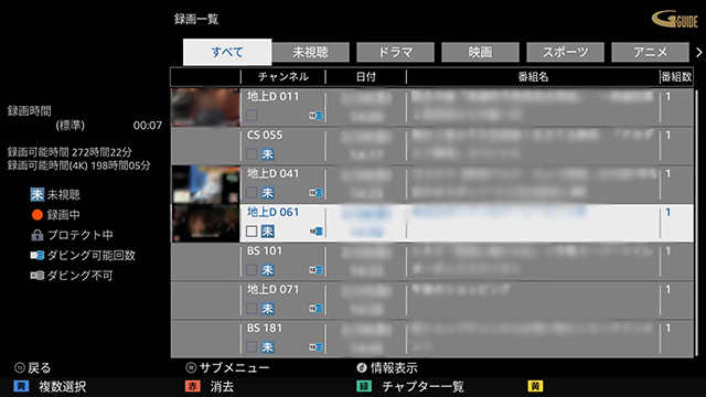 - 「録画一覧」を表示します。