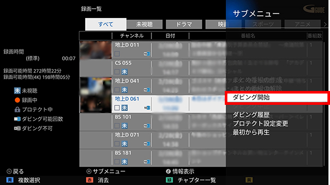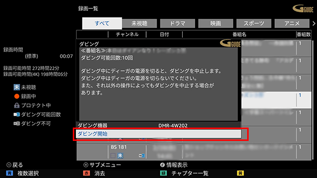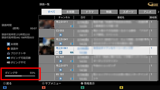 - ダビング中の番組は