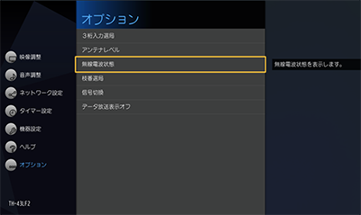 - 「オプション」→ 「無線電波状態」を選んで、リモコンの[決定]ボタンを押します。