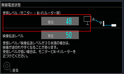 ※機種や無線接続の方法により、画面が異なる場合があります。(補足)放送受信中は以下の操作でも確認できます - 無線電波状態は以下の操作でわかります。