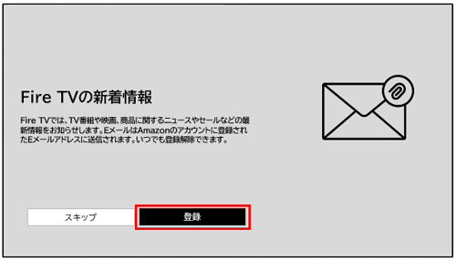 - Amazonからの新着情報が必要な方は「登録」、不要な方は「スキップ」を選択ください。