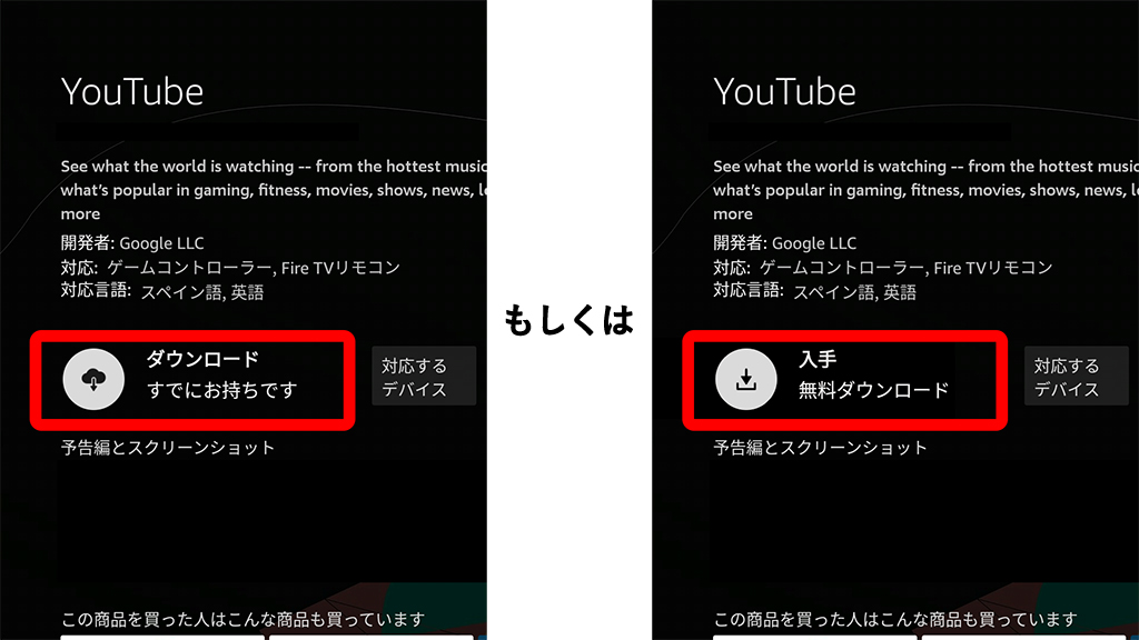 - もしも、上図の左右のいずれの画面も表示されなかった場合は既にYouTubeアプリがインストールされている可能性が高いので