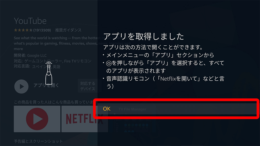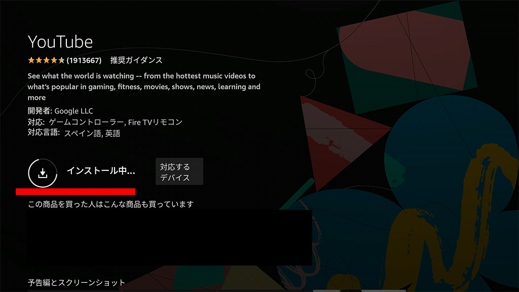 - 上記画面が表示されない場合もありますが、YouTubeアプリはインストールを開始しています。気になさらずにお待ちください。
