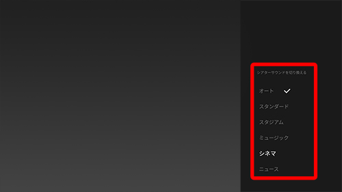 番組に応じた最適なサウンドに自動的に切り替えます。 - スタンダード