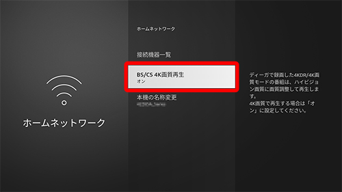- 「BS/CS 4K画質再生」を選択し、リモコンの「決定」ボタンを押す。