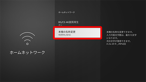 - 「本機の名称変更」を選択し、お好みの名称に変更し、リモコンの「決定」ボタンを押す。