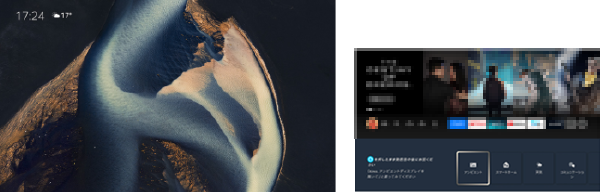 ボタンで [アンビエントディスプレイ]を選択し、[決定」ボタンを押す。 - アンビエントディスプレイを「オン」にすると、世界の風景や名画、また自分で撮影した写真※などを表示できます。